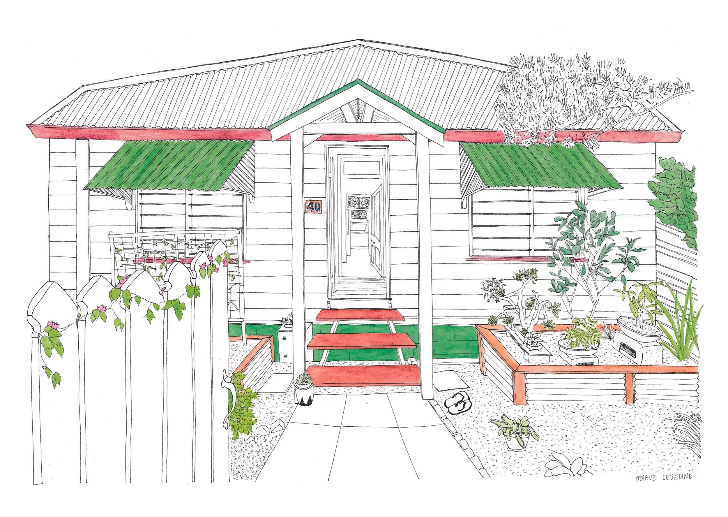 His wife and him had found themselves as empty nesters, keen to move to a quieter part of the world. They commissioned this drawing of their house before moving to Maleny. It’s a great view, peeking beyond the front fence.